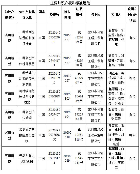 關(guān)于營口市環(huán)境工程開發(fā)有限公司作為主要完成單位提名2022年度遼寧省科技獎勵項目公示